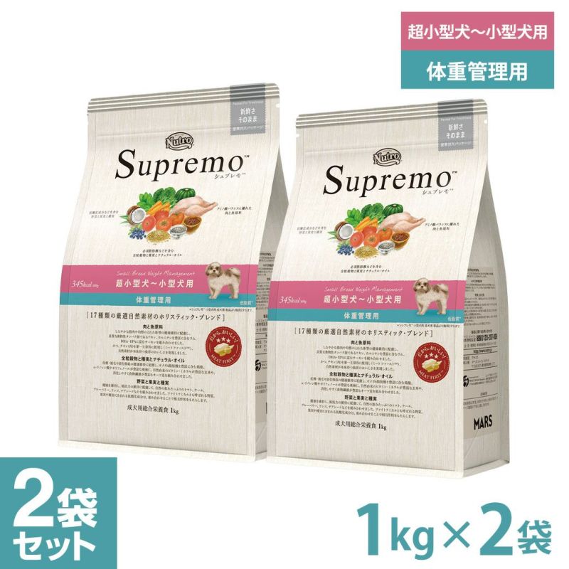 シュプレモ 超小型犬~小型犬用 体重管理用は、太りやすく体重が気になる超小型犬~小型犬のために脂質を抑え、さらに食事量を減らしても必須栄養素がしっかり取れるように栄養設計しつつ、チキン(肉)を原材料として一番多く使用することで、自然素材本来のおいしさを存分に味わうことができるフードです。健康で元気な体、美しい皮膚・被毛、消化吸収の健康維持に配慮し、栄養素を豊富に含む高品質な自然素材を厳選し、最適な栄養バランスでブレンドしています。また、顎・口が小さいなどの超小型犬~小型犬の特徴に配慮しています。【超小型犬~小型犬に適した小粒タイプ】