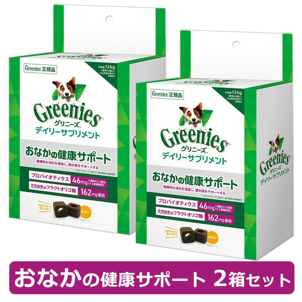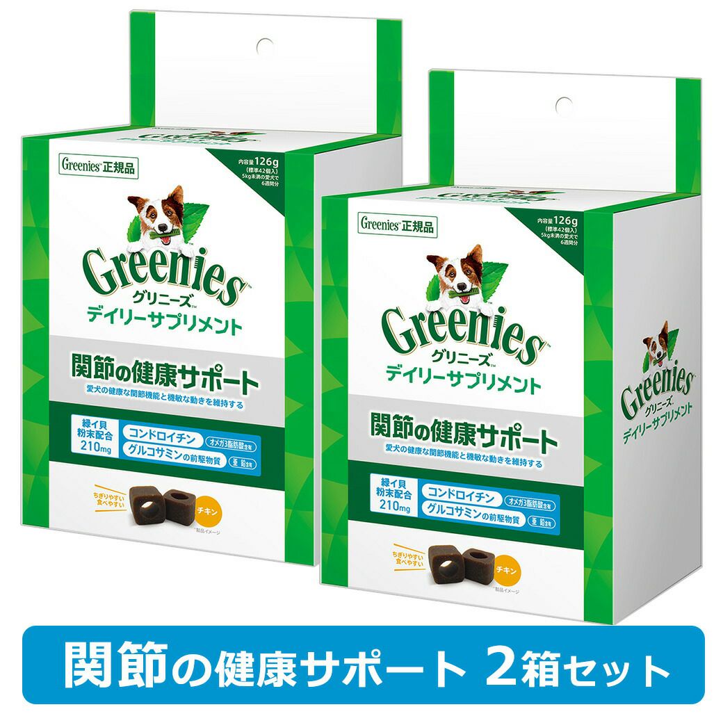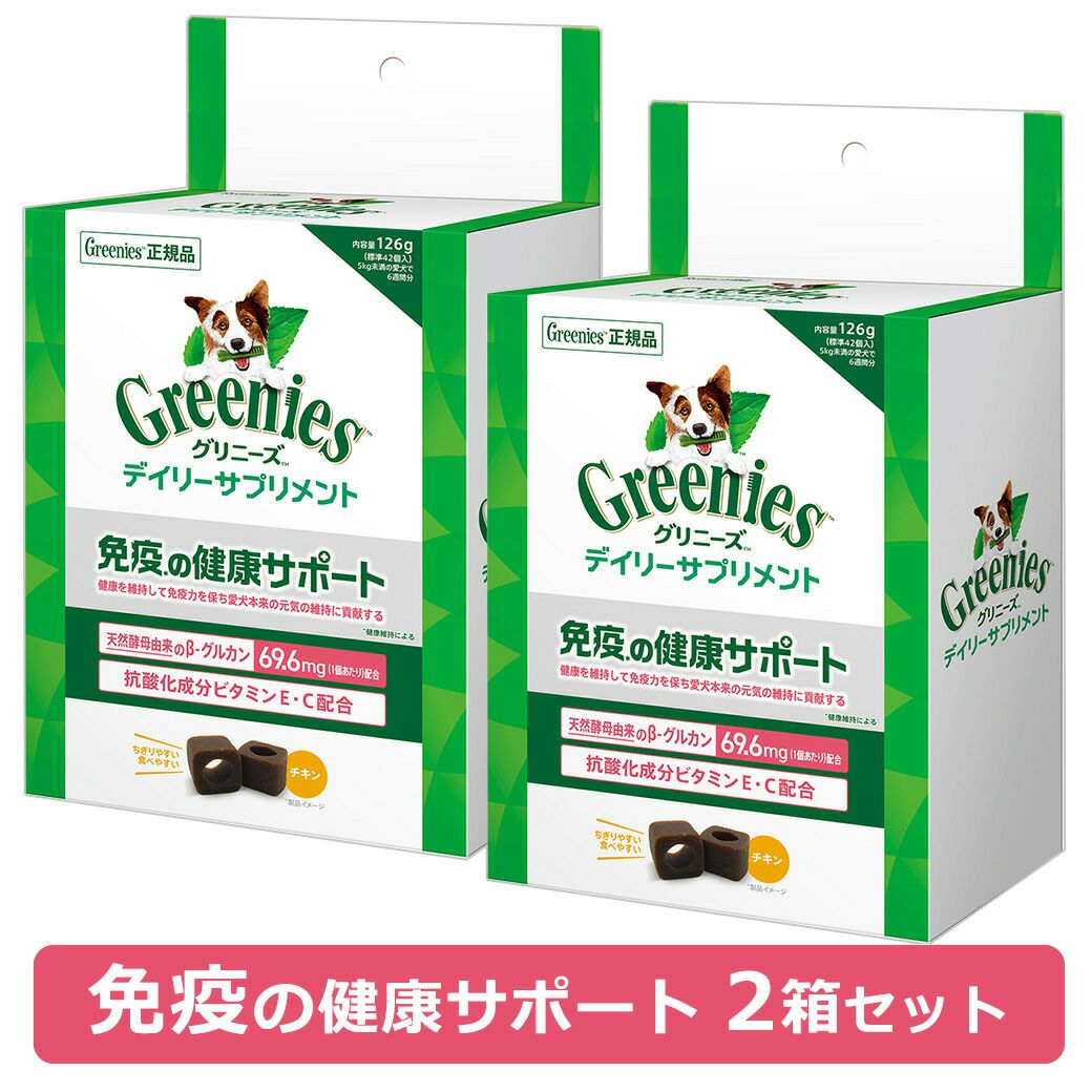 他の画像を見る 賞味期限:単品ページにて掲載 公認店 グリニーズ デイリーサプリメント 関節 おなか 免疫の健康サポート チキン 126g×2箱セット 犬用サプリメント 価格 ¥ 3,916 税込 グリニーズから新登場のデイリーサプリメント2箱セット! ちぎりやすく・食べやすい設計で、負担なく与えられるデイリーサプリメントです。 【関節の健康サポート チキン 126g】 ●緑イ貝粉末210mg配合 ●コンドロイチン、オメガ3脂肪酸含有 ●グルコサミンの前駆物質、亜鉛含有 ■原材料 小麦でん粉、小麦粉、とうもろこし粉、小麦グルテン、大豆ミール、緑イ貝粉末、チキン、食塩、植物性油脂、グリセリン、ビタミン類(C、E)、保存料(ソルビン酸K)、酸化防止剤(ミックストコフェロール、ローズマリー抽出物)コンドロイチン、グルコサミン前駆物質、オメガ3脂肪酸、亜鉛含む ■保証成分 タンパク質:20.0%以上、脂質:3.0%以上、粗繊維:2.0%以下、灰分:8.0%以下、水分:22.0%以下 ■エネルギー:8kcal/1個 ■内容量:126g(標準42個入) ■給与対象:全犬種・成犬 ■原産国:タイ 【おなかの健康サポート チキン 126g】 ●プロバイオティクス46mg配合 ●天然由来のフラクトオリゴ糖162mg配合 ■原材料 小麦でん粉、小麦グルテン、大豆ミール、とうもろこし粉、フラクトオリゴ糖、小麦粉、チキン、食塩、植物性油脂、グリセリン、バチルス菌、保存料(ソルビン酸K)、酸化防止剤(ミックストコフェロール、ローズマリー抽出物) ■保証成分 タンパク質:17.0%以上、脂質:2.0%以上、粗繊維:2.0%以下、灰分:8.0%以下、水分:22.0%以下 ■エネルギー:8kcal/1個 ■内容量:126g(標準42個入) ■給与対象:全犬種・成犬 ■原産国:タイ 【免疫の健康サポート チキン 126g】 ●天然酵母由来のβ-グルカン69.6mg(1個あたり)配合 ●抗酸化成分ビタミンE・C配合 ■原材料 小麦でん粉、小麦粉、とうもろこし粉、小麦グルテン、大豆ミール、チキン、β-グルカン、食塩、植物性油脂、グリセリン、ビタミン類(C、E)、保存料(ソルビン酸K)、酸化防止剤(ミックストコフェロール、ローズマリー抽出物) ■保証成分 タンパク質:18.0%以上、脂質:2.5%以上、粗繊維:2.0%以下、灰分:8.0%以下、水分:22.0%以下 ■エネルギー:8kcal/1個 ■内容量:126g(標準42個入) ■給与対象:全犬種・成犬 ■原産国:タイ ■1日あたりの給与量の目安 【体重】 1.3-5kg未満:1個 5-10kg未満:2個 10-15kg未満:3個 15-20kg未満:4個 5kg未満の愛犬には手でちぎって食べやすい大きさにして与えてください。 1歳未満の幼犬には与えないでください。 過剰に給与することはさけ、1日の目安量を守ってください。 常に清潔で新鮮な飲み水をご用意ください。 ■給与方法・ご注意事項 誤食防止のため、小児の手の届かない場所に保管してください。 開封後は直射日光・高温多湿を避けて保存し、なるべく早く使い切ってください。 虫が入らないように、しっかり密封してください。 カートに入れる お気に入りに登録する