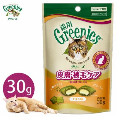 公認店 グリニーズ 猫用 皮膚 被毛ケアスナック チキン味 30gのレビューを書く