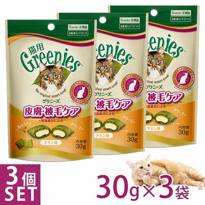 公認店 グリニーズ 猫用 皮膚 被毛ケアスナック チキン味 30g×3個セットのレビューを書く