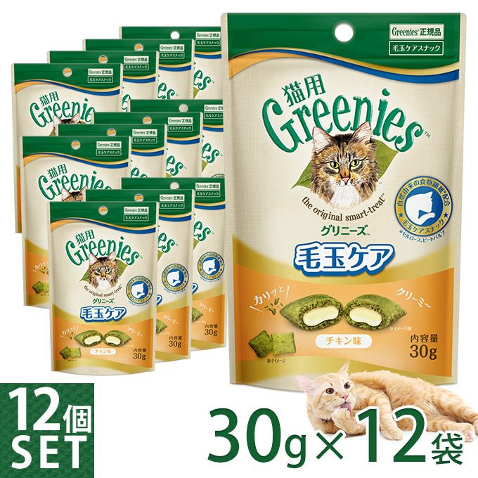 公認店 グリニーズ 猫用 毛玉ケアスナック チキン味 30g×12個セット