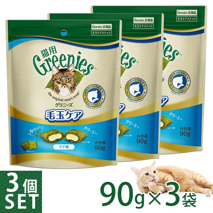 公認店 グリニーズ 猫用 毛玉ケアスナック ツナ味 90g×3個セット