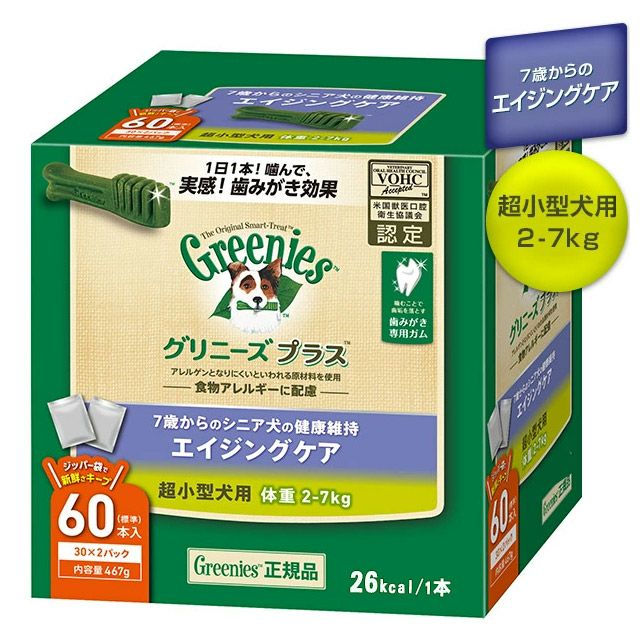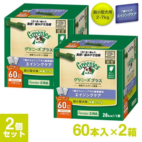 公認店 グリニーズプラス エイジングケア シニア 超小型犬用 2-7kg 60本入×2個セット ボックス