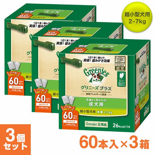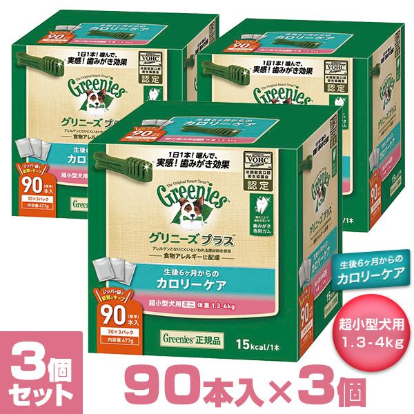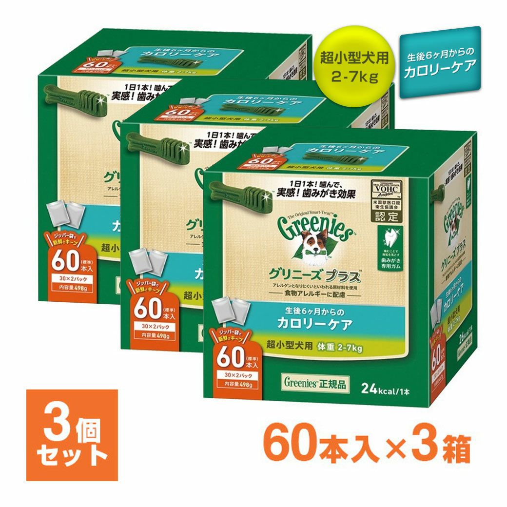 公認店 グリニーズプラス カロリーケア 超小型犬用 2-7kg 60本入×3個セット ボックス オーラルケア