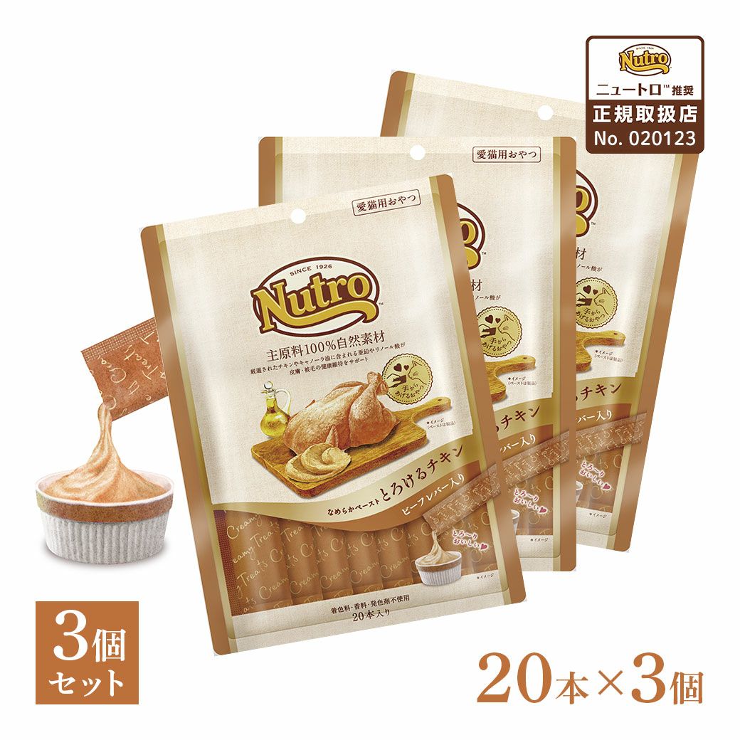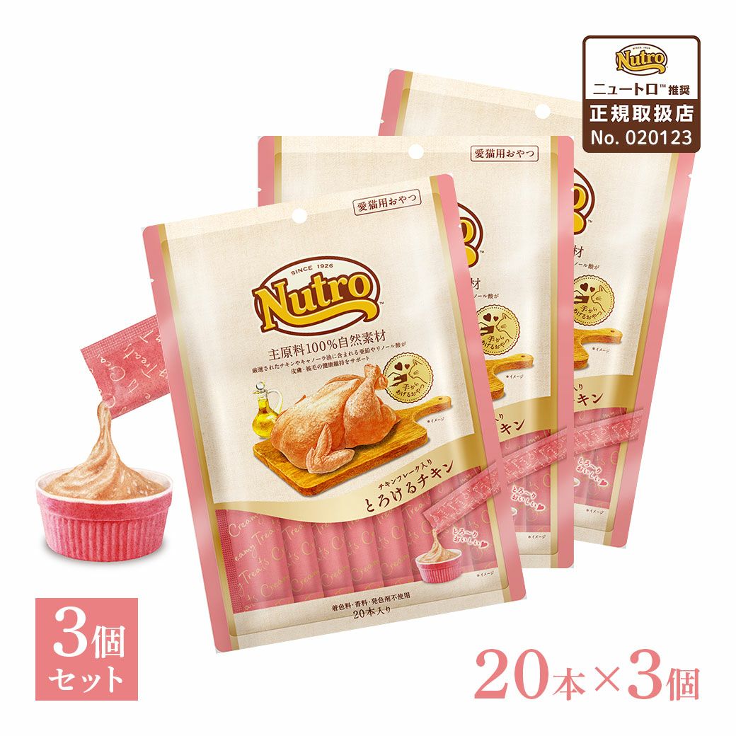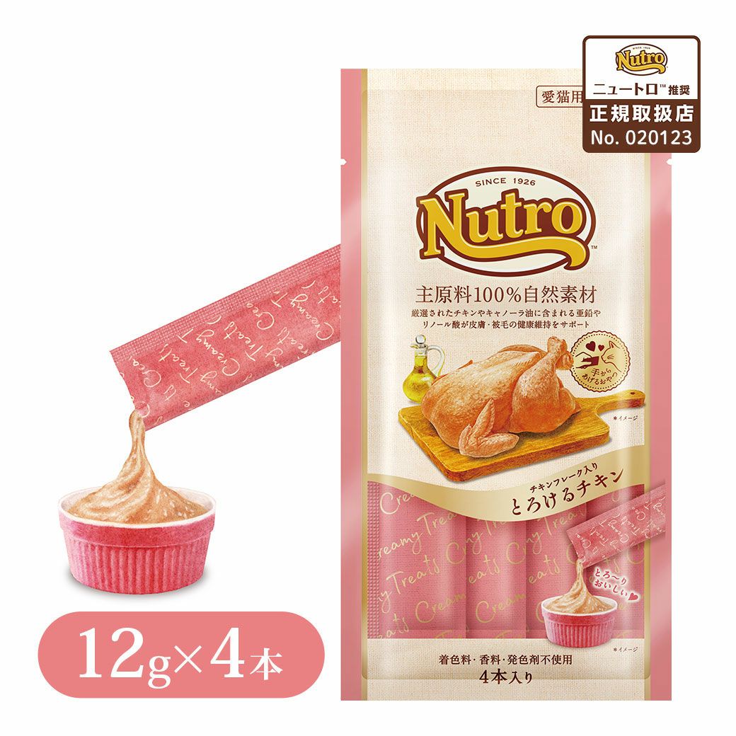 他の画像を見る 高品質な自然素材にこだわるニュートロが愛猫のためにおいしいおやつを作りました。 公認店 ニュートロ 猫おやつ チキンフレーク入り とろけるチキン&ビーフ 20本入り×3個 価格 ¥ 4,400 税込 厳選自然素材を主原料に100%使用! 素材のおいしさががお口いっぱいに広がるクリーミータイプのおやつ♪ 90年以上の歴史を誇るニュートロが、愛猫のために高品質な自然素材にこだわったおいしいおやつを作りました。 ニュートロが選ぶ原材料は全てに意味があります。 厳選した自然素材ひとつひとつが本来もつ、おいしさや栄養素を活かした製品づくりを通じ、おやつでも愛猫の健康維持をサポートします。 ■原材料:チキン*1、ツナ、ビーフ*2、キャノーラ油*3、増粘多糖類、調味料(アミノ酸等) *1 亜鉛含、*2 ビタミンB6、B12、ナイアシン、鉄、亜鉛含、*3 リノール酸、ビタミンE含 ■保証成分:タンパク質:8.0%以上、脂質:0.5%以上、粗繊維:0.5%以下、灰分:1.5%以下、水分:88.0%以下、代謝エネルギー:5.5kcal/1本 ■給与方法: 本品は成猫用です。体重3kg未満の愛猫には1日2本、3kg以上の愛猫には1日3本を限度におやつとして与えてください。 ■使用上の注意 ●本品はペットフードです。誤食防止のため、小児の手の届かない場所に保管してください。 ●本品は自然素材を使用しておりますので、原材料の産地や収穫時期により、製品中身の色・粘度・においなどにばらつきがあります。 ●開封後は冷蔵庫に入れ、なるべく早く使い切ってください。 ※こちらの情報はリニューアル後の商品内容となります。 ※順次、リニューアルを行なっているため商品により旧情報が含まれている場合がございます。 カートに入れる お気に入りに登録する