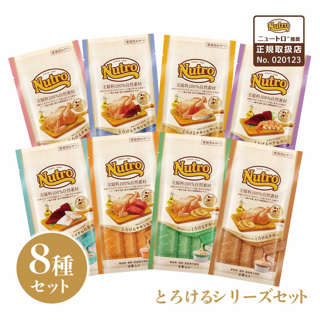 他の画像を見る 高品質な自然素材にこだわるニュートロが愛猫のためにおいしいおやつを作りました。 公認店 ニュートロ とろける全部セット 価格 ¥ 2,704 税込 厳選自然素材を主原料に100%使用! 素材のおいしさががお口いっぱいに広がるクリーミータイプのおやつ♪ 90年以上の歴史を誇るニュートロが、愛猫のために高品質な自然素材にこだわったおいしいおやつを作りました。 ニュートロが選ぶ原材料は全てに意味があります。 厳選した自然素材ひとつひとつが本来もつ、おいしさや栄養素を活かした製品づくりを通じ、おやつでも愛猫の健康維持をサポートします。 ■原材料 【とろけるチキン】 チキン*1、ツナ、ささみ、キャノーラ油*2、増粘多糖類、調味料(アミノ酸等) *1 亜鉛含、*2 リノール酸、ビタミンE含 【とろけるチキン&ツナ】 チキン*1、ツナ*2、まぐろエキス、キャノーラ油*3、増粘多糖類、調味料(アミノ酸等) *1 亜鉛含、*2 DHA、EPA含、*3 リノール酸、ビタミンE含 【とろけるチキン&サーモン】 チキン*1、ツナ、サーモン*2、キャノーラ油*3、増粘多糖類、調味料(アミノ酸等) *1 亜鉛含、*2 アスタキサンチン含、*3 リノール酸、ビタミンE含 【とろけるチキン&ビーフ】 チキン*1、ツナ、ビーフ*2、キャノーラ油*3、増粘多糖類、調味料(アミノ酸等) *1 亜鉛含、*2 ビタミンB6、B12、ナイアシン、鉄、亜鉛含、*3 リノール酸、ビタミンE含 【とろけるツナ&エビ】 チキン*1、ツナ*2、エビ*3、キャノーラ油*4、増粘多糖類、調味料(アミノ酸等) *1 亜鉛含、*2 DHA、EPA含、*3 タウリン、ビタミンE含、*4 リノール酸、ビタミンE含 【とろけるツナ&白身魚】 チキン*1、ツナ*2、白身魚、キャノーラ油*3、増粘多糖類、調味料(アミノ酸等) *1 亜鉛含、*2 DHA、EPA含、*3 リノール酸、ビタミンE含 【とろけるチキン チキンレバー入り】 チキン*1、ツナ、キャノーラ油*2、チキンレバー*3、増粘多糖類、調味料(アミノ酸等) *1 亜鉛含、*2 リノール酸、ビタミンE含、*3 鉄、ビタミンA含 【とろけるチキン ビーフレバー入り】 チキン*1、ツナ、キャノーラ油*2、ビーフレバー*3、増粘安定剤、調味料(アミノ酸等) *1 亜鉛含、*2 リノール酸、ビタミンE含、*3 鉄、ビタミンB群含 ■保証成分:タンパク質:8.0%以上、脂質:0.5%以上、粗繊維:0.5%以下、灰分:1.5%以下、水分:88.0%以下、代謝エネルギー:5.5kcal/1本 ■給与方法: 本品は成猫用です。体重3kg未満の愛猫には1日2本、3kg以上の愛猫には1日3本を限度におやつとして与えてください。 ■使用上の注意 ●本品はペットフードです。誤食防止のため、小児の手の届かない場所に保管してください。 ●本品は自然素材を使用しておりますので、原材料の産地や収穫時期により、製品中身の色・粘度・においなどにばらつきがあります。 ●開封後は冷蔵庫に入れ、なるべく早く使い切ってください。 ※こちらの情報はリニューアル後の商品内容となります。 ※順次、リニューアルを行なっているため商品により旧情報が含まれている場合がございます。 カートに入れる お気に入りに登録する