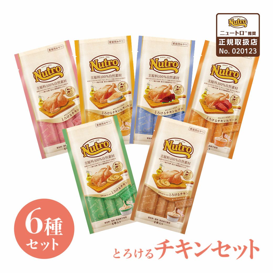 他の画像を見る 高品質な自然素材にこだわるニュートロが愛猫のためにおいしいおやつを作りました。 公認店 ニュートロ とろけるチキンセット 猫用おやつ 価格 ¥ 2,028 税込 厳選自然素材を主原料に100%使用! 素材のおいしさががお口いっぱいに広がるクリーミータイプのおやつ♪ 90年以上の歴史を誇るニュートロが、愛猫のために高品質な自然素材にこだわったおいしいおやつを作りました。 ニュートロが選ぶ原材料は全てに意味があります。 厳選した自然素材ひとつひとつが本来もつ、おいしさや栄養素を活かした製品づくりを通じ、おやつでも愛猫の健康維持をサポートします。 ■原材料 【とろけるチキン】 チキン*1、ツナ、ささみ、キャノーラ油*2、増粘多糖類、調味料(アミノ酸等) *1 亜鉛含、*2 リノール酸、ビタミンE含 【とろけるチキン&ツナ】 チキン*1、ツナ*2、まぐろエキス、キャノーラ油*3、増粘多糖類、調味料(アミノ酸等) *1 亜鉛含、*2 DHA、EPA含、*3 リノール酸、ビタミンE含 【とろけるチキン&サーモン】 チキン*1、ツナ、サーモン*2、キャノーラ油*3、増粘多糖類、調味料(アミノ酸等) *1 亜鉛含、*2 アスタキサンチン含、*3 リノール酸、ビタミンE含 【とろけるチキン&ビーフ】 チキン*1、ツナ、ビーフ*2、キャノーラ油*3、増粘多糖類、調味料(アミノ酸等) *1 亜鉛含、*2 ビタミンB6、B12、ナイアシン、鉄、亜鉛含、*3 リノール酸、ビタミンE含 【とろけるチキン チキンレバー入り】 チキン*1、ツナ、キャノーラ油*2、チキンレバー*3、増粘多糖類、調味料(アミノ酸等) *1 亜鉛含、*2 リノール酸、ビタミンE含、*3 鉄、ビタミンA含 【とろけるチキン ビーフレバー入り】 チキン*1、ツナ、キャノーラ油*2、ビーフレバー*3、増粘安定剤、調味料(アミノ酸等) *1 亜鉛含、*2 リノール酸、ビタミンE含、*3 鉄、ビタミンB群含 ■保証成分:タンパク質:8.0%以上、脂質:0.5%以上、粗繊維:0.5%以下、灰分:1.5%以下、水分:88.0%以下、代謝エネルギー:5.5kcal/1本 ■給与方法: 本品は成猫用です。体重3kg未満の愛猫には1日2本、3kg以上の愛猫には1日3本を限度におやつとして与えてください。 ■使用上の注意 ●本品はペットフードです。誤食防止のため、小児の手の届かない場所に保管してください。 ●本品は自然素材を使用しておりますので、原材料の産地や収穫時期により、製品中身の色・粘度・においなどにばらつきがあります。 ●開封後は冷蔵庫に入れ、なるべく早く使い切ってください。 ※こちらの情報はリニューアル後の商品内容となります。 ※順次、リニューアルを行なっているため商品により旧情報が含まれている場合がございます。 カートに入れる お気に入りに登録する