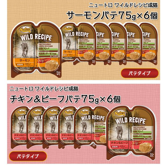 他の画像を見る ニュートロ ワイルドレシピ 成猫用 トレイ 75g×6個セット ●高タンパクで穀物を使用しない食事を厳選自然素材で実現! 公認店 ニュートロ ワイルドレシピ 成猫用 トレイ 75g×6個セット 価格 ¥ 1,518 税込 肉食である愛猫が本能的に求める食事 肉食の猫が野生のころから食べている高タンパクで穀物を使用しない食事を高品質な厳選自然素材で作りました。 肉食である猫のネイチャー(本質)に着目し、野生のころから食べている食事を、最新の栄養学と技術を持って、厳選素材を使用して作りました。 猫の一食分にちょうどいい、少量使いきりタイプ。 愛猫の本能に訴え、愛猫が自ら選びに来る食事を、ぜひお試しください。 ☆高タンパク ☆穀物フリー ☆肉や魚を第一主原料に使用 ☆厳選素材を使用 ■セット内容【 ニュートロ ワイルドレシピ 成猫用 】 ・サーモン パテタイプ×6個セット ・チキン&ビーフ パテタイプ×6個セット ・サーモン&トラウト入り パテタイプ×6個セット ■総合栄養食 本品は、ペットフード公正取引協議会の定める分析試験の結果、総合栄養食の基準を満たすことが証明されています。 ■原産国:アメリカ 【ニュートロ ワイルドレシピ 成猫用 サーモン パテ】 ■原材料:サーモン、鶏レバー、チキン、肉エキス、フィッシュオイル、ビタミン類、ミネラル類、アミノ酸類、増粘多糖類 ■代謝エネルギー:39kcal/1トレイ 【ニュートロ ワイルドレシピ 成猫用 チキン&ビーフ パテ】 ■原材料:サーモン、チキン、鶏レバー、肉エキス、トラウト、フィッシュオイル、ビタミン類、ミネラル類、アミノ酸類、増粘多糖類 ■代謝エネルギー:45kcal/1トレイ 【ニュートロ ワイルドレシピ 成猫用 サーモン&トラウト入り パテ】 ■原材料:サーモン、チキン、鶏レバー、肉エキス、トラウト、フィッシュオイル、ビタミン類、ミネラル類、アミノ酸類、増粘多糖類 ■代謝エネルギー:42kcal/1トレイ □全猫種用 総合栄養食 ナチュラルキャットフード 猫用ごはん ペットフード ウェットフード 穀物不使用 Nutro Spremo WILD RECIPE ワイルドレシピ カートに入れる お気に入りに登録する